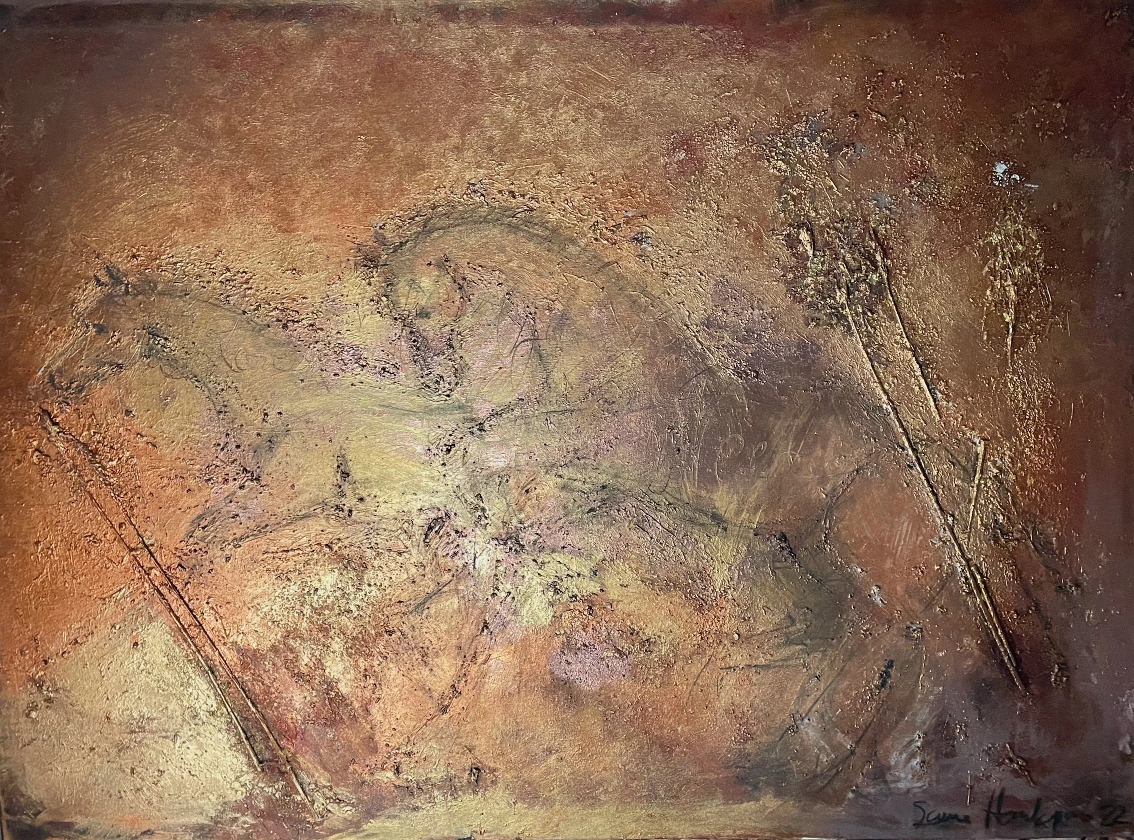 Haluan, että jokainen teokseni on pinnaltaan kohahduttavan elävä ja herättää mahdollisimman paljon ajatuksia. Useissa teoksissa pohjasta kuultaa pronssin, kullan ja kuparin sävyt. Eniten mieleeni on lämpimät sävyt.